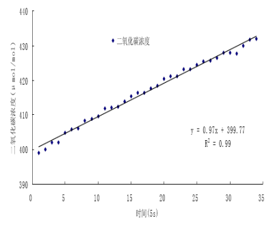 圖a  RR-7330 測量系統(tǒng)測量閉路箱內(nèi)CO2累積過程及線性關(guān)系(中國農(nóng)業(yè)大學,韓廣魯,2010)