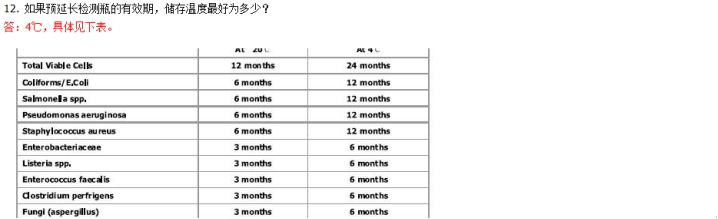 | 1. 檢測瓶可以檢測多少種微生物,分別是什么? 答:活菌總數(shù)、大腸菌群、大腸桿菌、腸道桿菌科、金黃色葡萄球菌、綠膿桿菌、沙門氏菌、李斯特菌、腸球菌、亞硫酸鹽還原梭狀芽孢桿菌、產氣莢膜梭菌、曲霉屬真菌、曲霉菌、酵母菌。 以后還有陸續(xù)有其他微生物菌種的檢測瓶相繼面世。包括軍團菌等。 | 2. 檢測瓶在檢測大腸桿菌時,可以檢測到所有的大腸桿菌菌株么(包括目前流行的 EHEC?) 答:是的,可以檢測到全部的大腸桿菌菌株,包括 EHEC 腸出血性大腸桿菌(E.coli O104, O111, O157 等) | 3. 檢測瓶的應用范圍有哪些? 答:衛(wèi)生控制:食品(HACCP),廚房、工具、表面(HACCP),水質,(CDC)疾病控制、進出口檢驗檢疫、藥品及化妝品。 與我們生活息息相關的:環(huán)境監(jiān)測機構,農產品及相關加工公司,水源檢測和制水廠,水配送公司,藥廠、藥房、化妝品廠,分析實驗室和 HACCP 診斷,奶制品廠,咖啡館、餐廳,消費者保護團體、工商管理機構,室內空調調節(jié)公司,尤其能應用于軍事、大型展會等的食品快速檢測。 | 4. 你認為大腸桿菌檢測瓶、李斯特菌檢測瓶、沙門氏菌檢測瓶除了是用于食品安全檢測外,適用于醫(yī)療么? 答:大腸桿菌(EHEC)、李斯特菌、沙門氏菌,這三款檢測瓶可用于體外臨床檢測。 Royal 微生物檢測瓶系列的全球定位依然是食品安全。在歐洲,對人體進行微生物的臨床體外檢測是非常少的,歐洲的各方面安全控制的很好。然而,在發(fā)展中國家,以上三款微生物的人體體外臨床檢測經常發(fā)生。而以上三款檢測瓶用于體外臨床檢測的安全性和準確度都可以保證。 4 合 1 試紙片和檢測瓶市場定位的區(qū)別 1)4 合 1 試紙片和檢測瓶比較 4 合 1 試紙片配合其分析儀,一臺分析儀可以同時檢測 48 個試紙片。因此,從經濟成本的角度考量,一開機就是 48 片同時檢查。對于醫(yī)院,攢夠 48個糞便樣本后,一次性進行分析。 檢測瓶,一個樣本就可以進行檢查。而且更大的優(yōu)勢在于,這款產品會非常受醫(yī)生的歡迎。因為醫(yī)生可以不用接觸樣本,這是目前大多數(shù)的醫(yī)院檢測無法做到的。把瓶子給病人,讓病人自己將糞便樣本放入后送回給醫(yī)生。醫(yī)生拿到檢測瓶,在醫(yī)院的振蕩器上搖勻后,放入孵育機,等待結果判讀即可。 2)檢測瓶與醫(yī)院目前傳統(tǒng)檢測法的比較 ?目前醫(yī)院的檢測方式依然是培養(yǎng)皿法居多。這種方法*令醫(yī)生反感的地方是醫(yī)生要接觸樣本。如果醫(yī)生處于懷孕期,接觸到李斯特菌的后果就是流產。如果檢測臺沒有處理干凈,也容易導致微生物的傳播。 檢測瓶,醫(yī)生完全不用接觸樣本。樣本放入檢測瓶的的這個過程交給病人在衛(wèi)生間去操作就可以。醫(yī)生要做的就是簡單的搖勻和放入孵育器孵育(振蕩器和孵育器都是醫(yī)院的常規(guī)設備)。 | 5. 無論固態(tài)、液態(tài)還是表面樣本,在檢測時是否都無需進行前處理? 答:是的 | 6. 檢測儀的特異性是多少? 答:99.999%(理論極限值) | 7. 檢測儀的靈敏度是多少? 答:可以檢測到 1 個活菌的理論極限值。 | 8. 做定性分析時,檢測需要幾步,分別是什么? 答:三步:加樣;搖動瓶子直到充分溶解和混合;在適當時間判讀結果(根據對照表)。*后不要忘記按下瓶蓋上方進行無菌處理。 | 9. 做定量分析時,檢測需要幾步,分別是什么? 答:同上。具體請參考檢測儀操作文檔。 | 10. 檢測后按下檢測瓶瓶蓋的目的是什么? 答:無菌處理,請參考上第 45 題。 | 11. 檢測瓶的儲存溫度是多少? 答:在 20℃-25℃左右既可以儲存,這個溫度下很方便運輸,對于臨檢來說是有利的。但隨著大氣溫室效應,夏天時還是要注意儲存溫度不要超過 25℃,負責會影響檢測瓶檢測的靈敏度。然而,如果可以放到 4℃進行儲存,保質期可以延長近一倍。 |